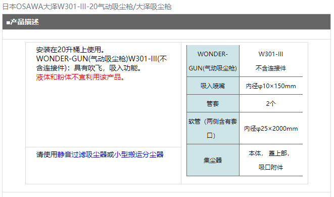 > 日本OSAWA大泽W301-III-20气动吸尘枪