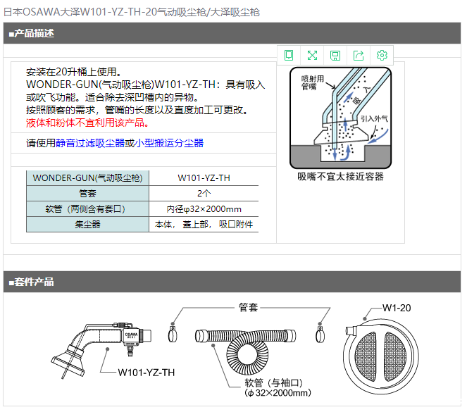 > 日本OSAWA大泽W101-YZ-TH-20气动吸尘枪
