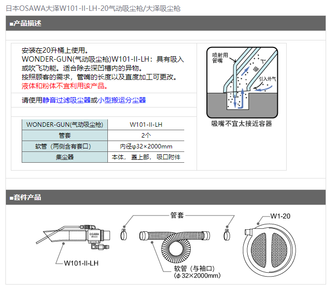 > 日本OSAWA大泽W101-II-LH-20气动吸尘枪