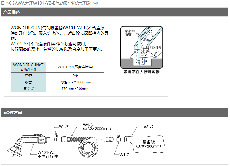 > 日本OSAWA大泽W101-YZ-B气动吸尘枪