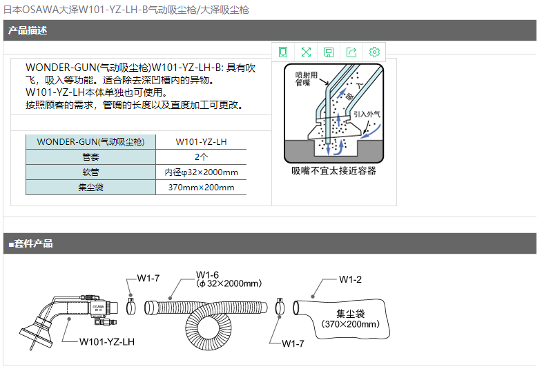 > 日本OSAWA大泽W101-YZ-LH-B气动吸尘枪