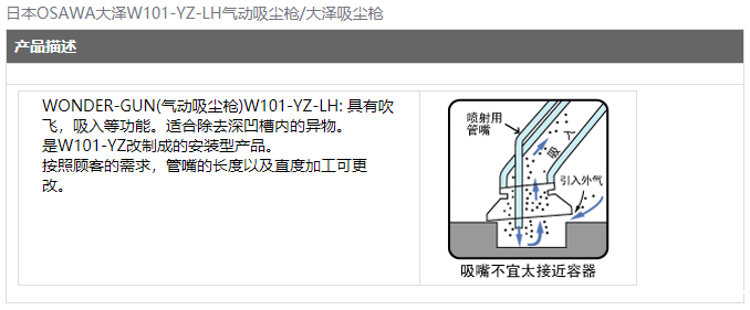 > 日本OSAWA大泽W101-YZ-LH气动吸尘枪