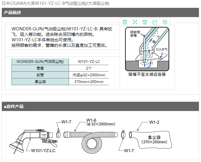 > 日本OSAWA大泽W101-YZ-LC-B气动吸尘枪