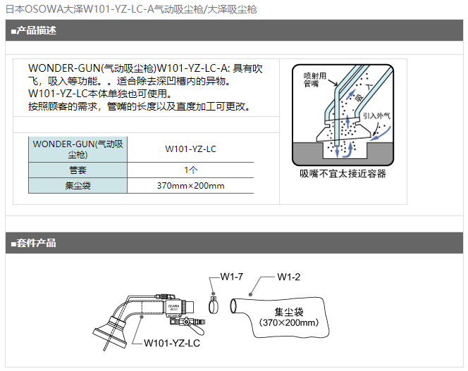 > 日本OSAWA大泽W101-YZ-LC-A气动吸尘枪