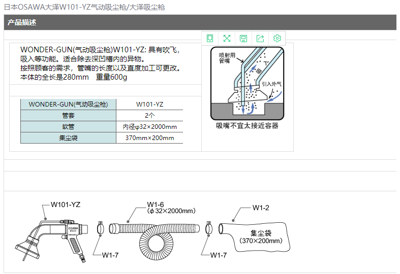 > 日本OSAWA大泽W101-YZ气动吸尘枪