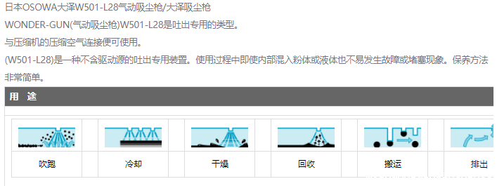 > 日本OSAWA大泽W501-L28气动吸尘枪
