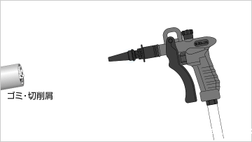 从注入的空气中反弹回来的切屑和切屑可以通过强大的气幕转移到侧面。