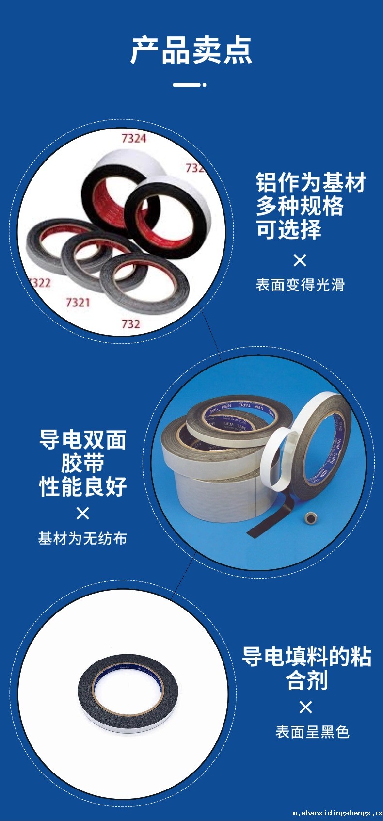 用于密封EMI屏蔽室,壳体和电子设备的接缝,缠绕电缆进行屏蔽,提供可靠的接地表面,对不能焊接的表面提供电接触,日新双面碳导电胶带是专门为扫描电镜具有良好的黏附性和不可辨结构,是观测整个样本的理想背景基片。