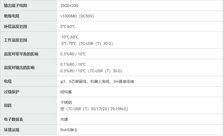 产品简介: 日本TEAC TC-USR(T)-G3压缩称重传感器TC系列 机械手电缆 TC-USR(T)-G3