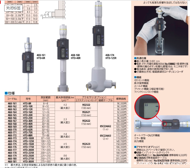 产品简介: 日本三丰MITUTOYO卡扣式数显内径测量仪468-161 HTD-8R