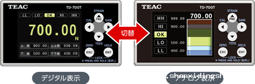 可以在可以直接读取物理量的±99999 5位数字显示和像模拟一样显示数值的条形表显示之间切换。