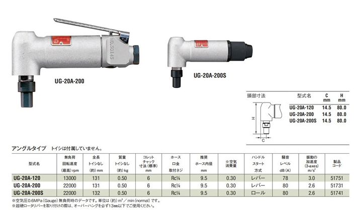 产品简介: 日本瓜生URYU气动打磨砂轮机UG-20A-200 UG-20A-120 多种型号选择 UG-38NS UG-25NA UG-38NA