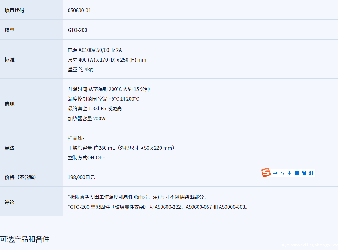柴田科学日本玻璃管烤箱 GTO-200 型