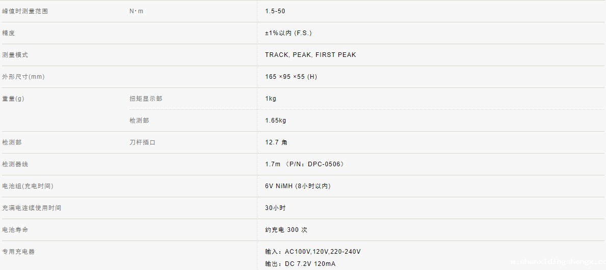 采用液晶数字显示测试数值. 判读容易. 不会失误. 扭力测定度达到+- 0.5% . 瞬时逆时方向. 扭力皆可测试. 值保留装置. 可以供比较. 单位转换开关可选择使用单位kgf-cm N.m.或 kgf-cm Lb.inch. 附有组数值输出端子. 可连接外围设备. 绘出扭力输出曲线图或印出多一次测量结果. 以供判读管理. 本机采用充电电池. 体积小. 重量轻. 结构精密. 方便携带使用.