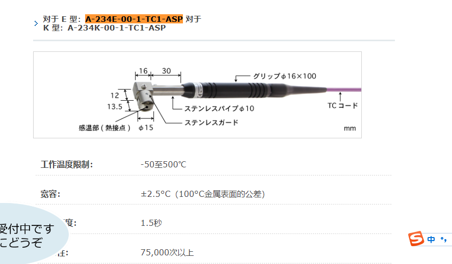 日本安立ANRITSU 温度探头 模温探头 温度计探头 红外测温仪