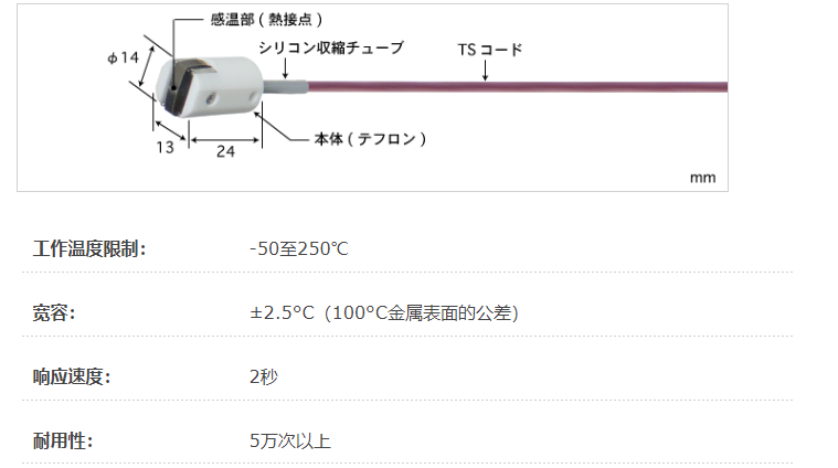 MG系列温度计探头MG-21E-TS1-ASP安立是适用于测量可以用磁铁固定的表面的温度传感器,例如设备和模具表面。订购时,您可以“自由组合”头部尺寸、防护材料、有无握把等项目。