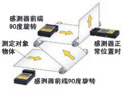 前端感测部可作转动以调整测量角度, 在下面图示位置都可以进行感测。