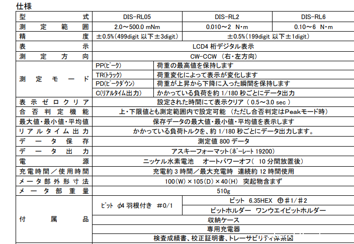 日本进口cedar进口思达DIS-RL05分离式数字扭矩起子/扳手。检测部分非常紧凑,对于狭窄场所的扭矩测量和微小扭矩测量非常有效。可保存5个通道的合格/不合格判断条件,即使拧紧条件发生变化,也可通过切换通道简单地进行设置。“测量模式”、“测量单位”、“值/小值/平均值”显示