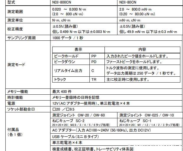 产品简介: NDI-800CN在 PC 上轻松设置测试仪轻松搜索内存数据使用 AC 适配器无需充电可在测量期间检查通过/失败判断阈值通过测量显示颜色可免费下载专用软件附带手动工具用测量夹具“Screw Cube”