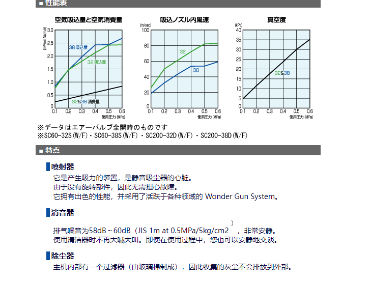 产品简介: Silent Cleaner SC60-38SW/F 是在SC60-38S中加入了滤尘器的产品。可以使用压缩空气(压缩机空气)作为驱动源进行抽吸。强力收集谷物、小砾石、金属碎片等,传统工业清洁剂无法有效收集这些物质。非常适合任何工作场所。级结构/多重过滤器!长时间连续使用OK!吸力强、降噪的万能吸尘器。重量:23kg 高度:1,011mm 宽度:550mm吸嘴:外径:38mm 长度:700mm吸管:内径:38mm,长度:2000mm带 60 升不锈钢罐、脚轮和灰尘过滤器。 也可提供强型。单