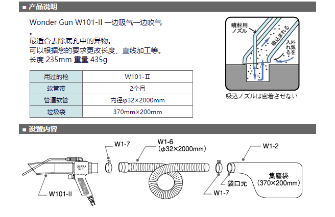 日本大泽气动吸尘枪W101-Ⅱ深孔型