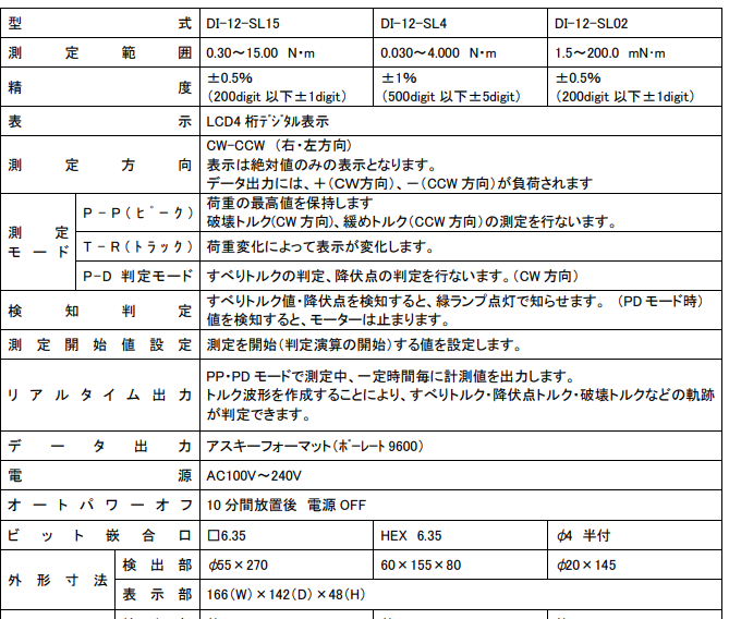 日本进口思达DI-12-SL15测量拧紧的螺丝用多大的力拧紧。通过高精度捕捉滑动的发生并测量其扭矩,现在可以测量拧紧螺钉的扭矩值。用于产品的抽检和动力驱动器输出力矩的设定和管理。
