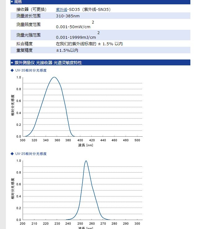 产品简介: 可轻松管理曝光设备的照度和光量的小巧轻便的便携型。您可以轻松测量紫外线的照度和量。根据您正在使用(待使用)的光源和抗蚀剂的灵敏度选择UV-25、35、42的接收器。但是,UV-SN25、UV-SN35、UV-SN42用于电子电路(印刷)板的制造过程,UV-SD25、UV用于半导体和液晶板的制造过程。-推荐选择 SD35 或 UV-SD42。测量数据可以通过 RS-232C 通讯输出传输。它还具有模拟输出。
