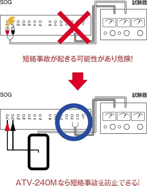 是为了防止在进行“VT内置PAS联锁测试”时,因测试设备的夹子短路而导致“没有保险丝等保护装置的内置VT损坏”的装置。),以及当检测到电压时,信号输出(触点)变为 ON,并且操作灯闪烁。