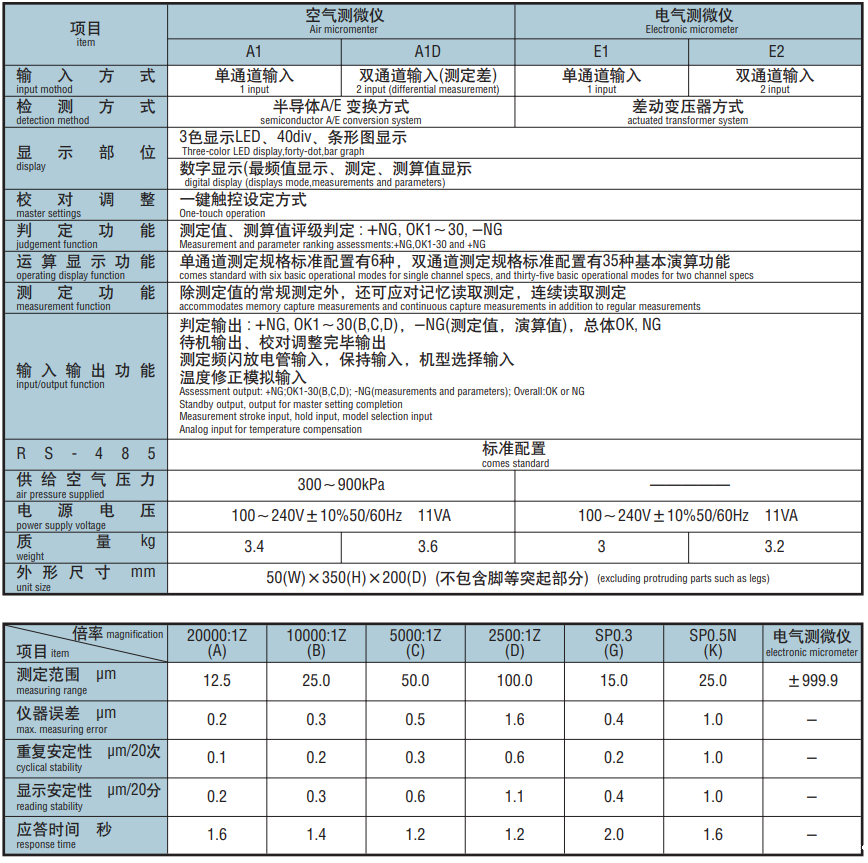 A1D1是高精度、多功能的测差背压式空气测微仪。仅用一台即可测量锥度、段差、平行度等项目