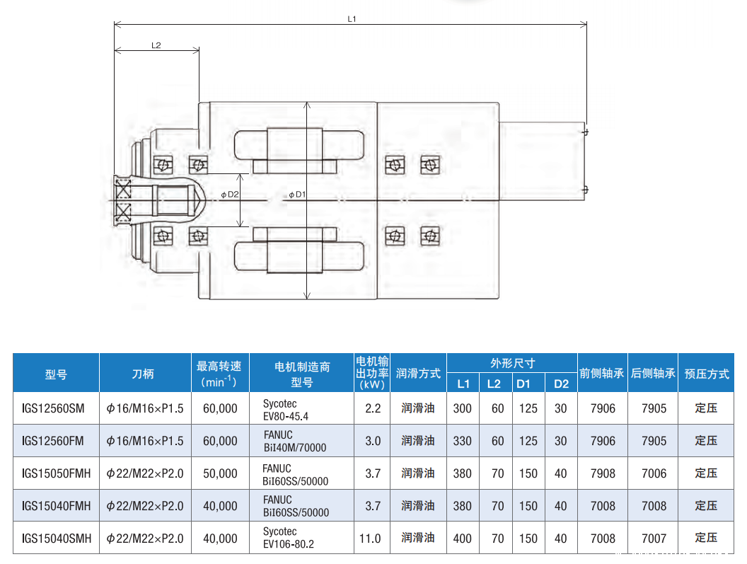 IGS12560SM凭借高精度及高速旋转,实现高精度内圆磨削。电机内置规格的内圆磨床用高速主轴。考虑到可能未配备NC控制装置, 除了FANUC制电机规格外, 还备有Syco tec(德国) 制电机规格,可满足客户的广泛需求。IGS12560SM凭借高精度及高速旋转,实现高精度内圆磨削。电机内置规格的内圆磨床用高速主轴。考虑到可能未配备NC控制装置, 除了FANUC制电机规格外, 还备有Syco tec(德国) 制电机规格,可满足客户的广泛需求。