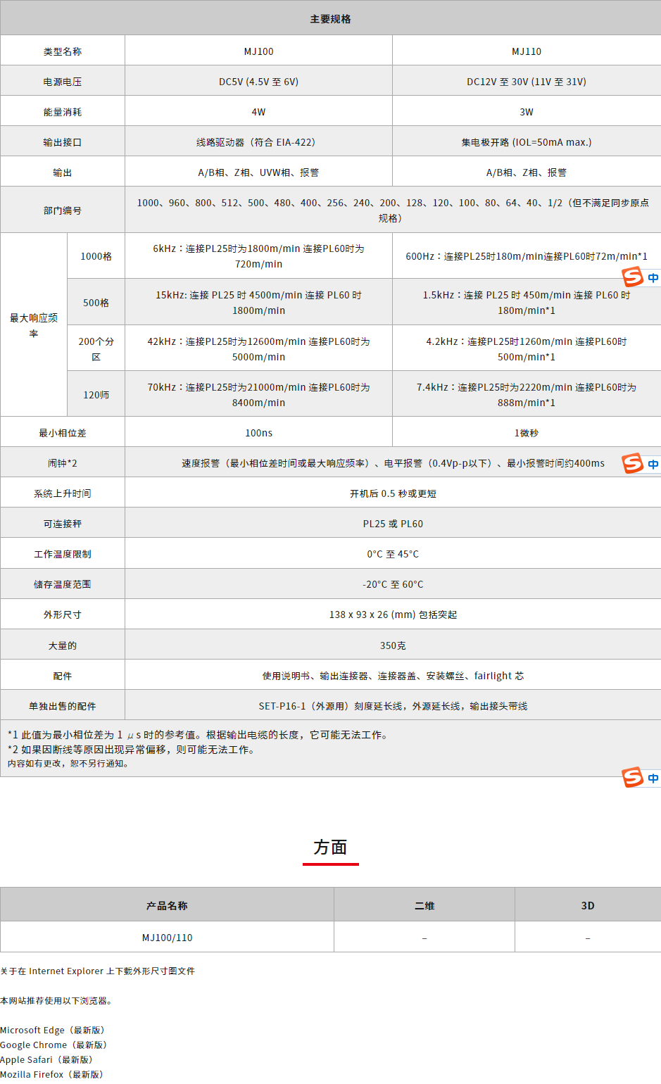 电源电压 MJ100:5V(4.5~6V)、MJ110:12~30V(11~31V)