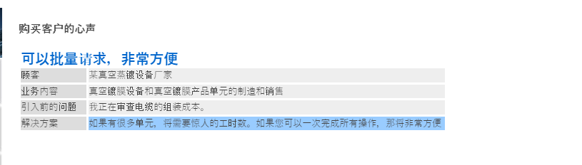 我们将从一个连接器连接到电线的流量计发货。消除询问布线承包商的麻烦。如果,也可以安装中继电缆,以批量请求,非常方便顾客某真空蒸镀设备厂家 业务内容真空镀膜设备和真空镀膜产品单元的制造和销售引入前的问题 我正在审查电缆的组装成本。解决方案如果有很多单元,将需要惊人的工时数。如果您可以一次完成所有操作,那将非常方便