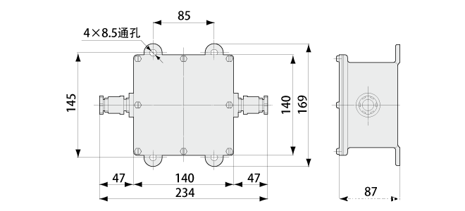 普通型连接箱连接载荷传感器的电缆时, 以及使用多个传感器集中输入时使用适用电缆直径φ10~11(15C)SJB-C在载荷传感器的电缆与其他电缆连接、延长时使用, 以及用多个载荷传感器测量单个容器、料斗的重量时, 能够将传送到放大器的输出集中为一个输出。