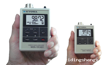 产品简介: 带背光功能,在阴暗的地方测量方便,显示为5位数字、单位显示、状态显示、电池剩余量显示,对采样频率为50, 2.5Hz的现象有峰值保持功能,能以CSV格式的文件采集测量值(WDS-191AS1E),以2节5号干电池工作,轻量