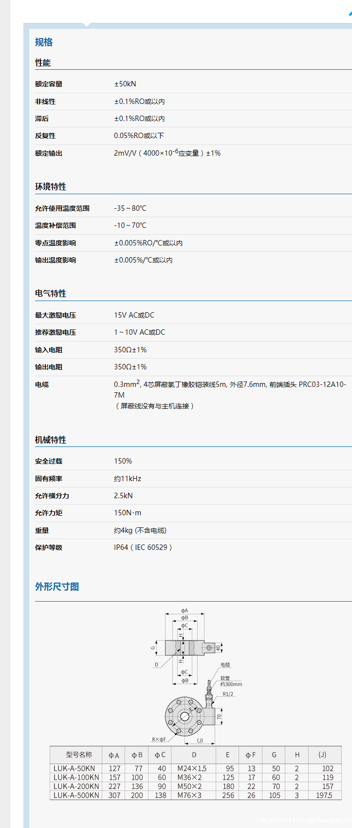 直径:77mm(±5~±10kN), 107mm(±20kN), 127mm(±50kN), 157mm(±100kN), 227mm(±200kN), 307mm(±500kN), 375mm(±1MN), 560mm(±2MN)