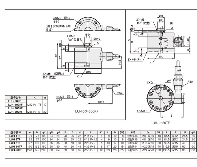 上海共和电业LUH-100KF LUH-200KF LUH-500KF高精度拉伸压缩两用载荷传感器