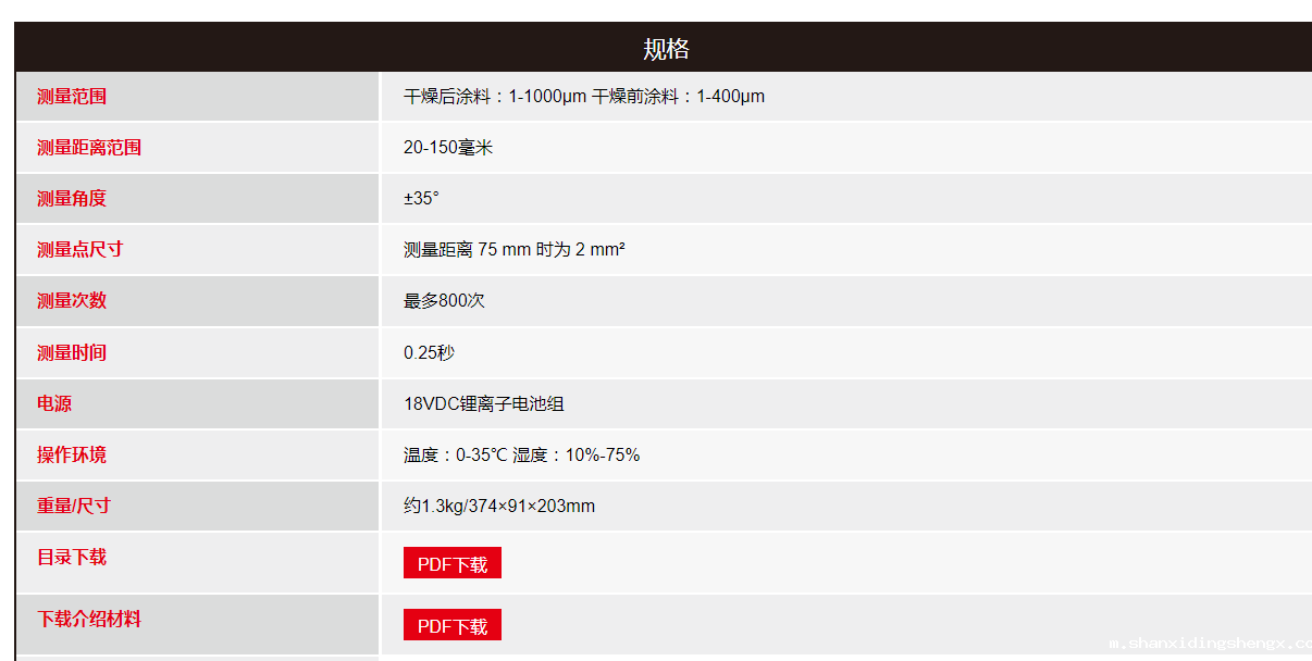 每个点的测量时间为数秒,测量面积为φ1~50mm。