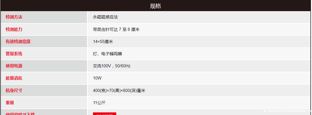 用于检测和检测各种纺织产品和工业产品中混入的铁针、铁钉、碎片等。