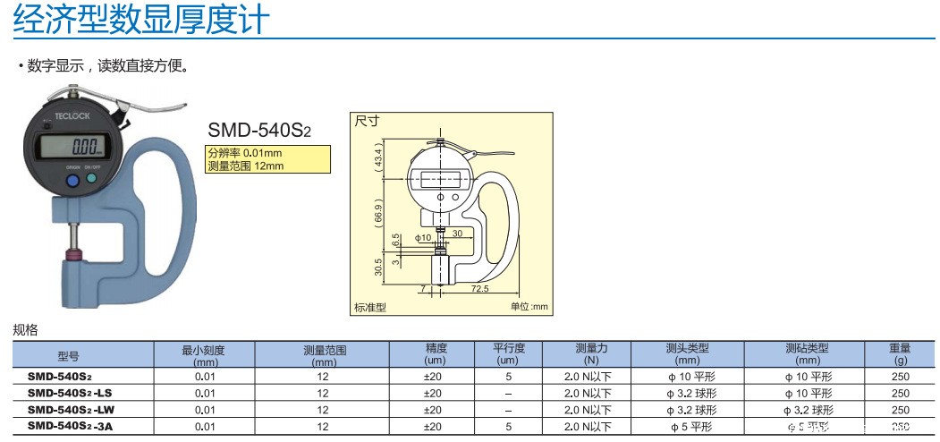 TECLOCK得乐数显厚度计便携式电子测厚仪SMD-540S2