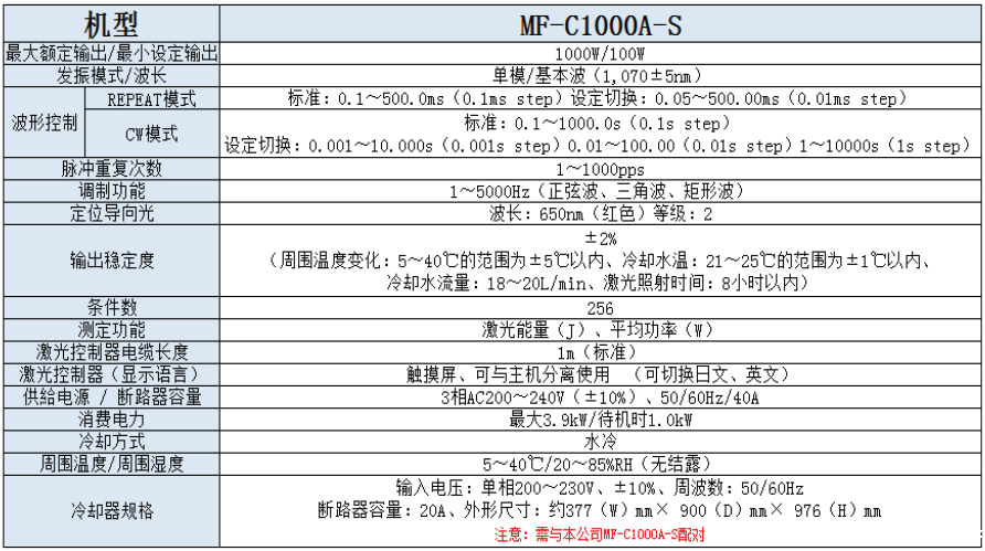 产品简介: 光纤激光焊接机MF-C1000A-S(1000W)产品PDF单模 通过光学构成获得最合适的高斯光束,满足搭配极细光纤入射并获得极小焊点的需求,相多模激光可获得更小焊点和更深的熔深。激光控制器通过触摸屏式的大型液晶彩色显示器,方便进行条件的输入。可从本体取下,方便手头进行操作。显示语言可在日文和英文间进行切换。耐反射光特性抑制反射光的停止频率。最适合铝和铜高反射材料的加工。激光本体内置温度传感器,防止损伤发振器。自主加热控制功能该功能是将在加工部产生的热度通过加工用激光和同轴进行检测并可变地控制激光输出,同时精确地控制加工部的热输入功能。