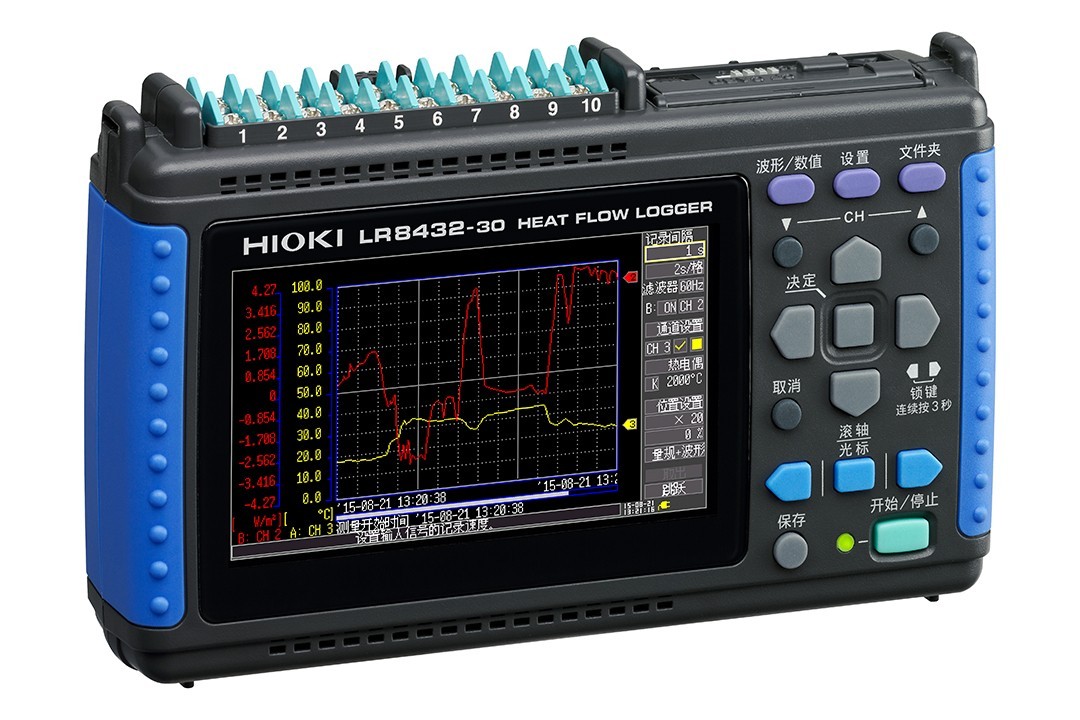 使用热流传感器测量热量和热流情况 简单分析温度、热流 U盘记录测量数据,轻松传输至PC。长时间记录时使用可靠性更高的CF卡记录