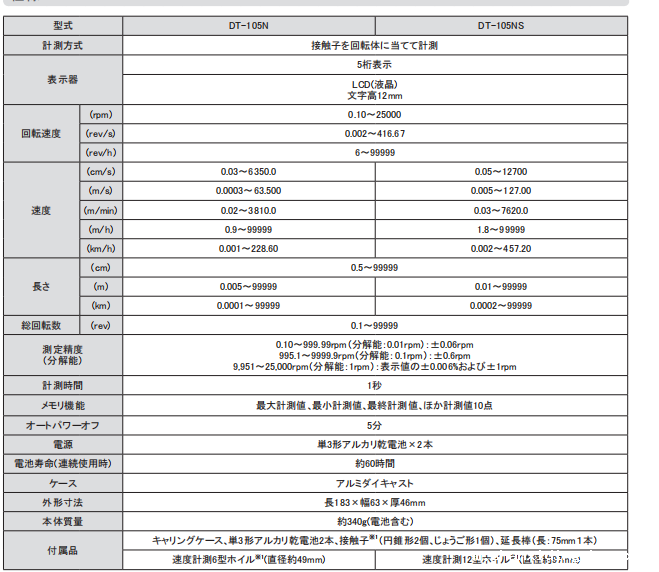 日本新宝手持式接触式液晶显示数字转速表DT-105N