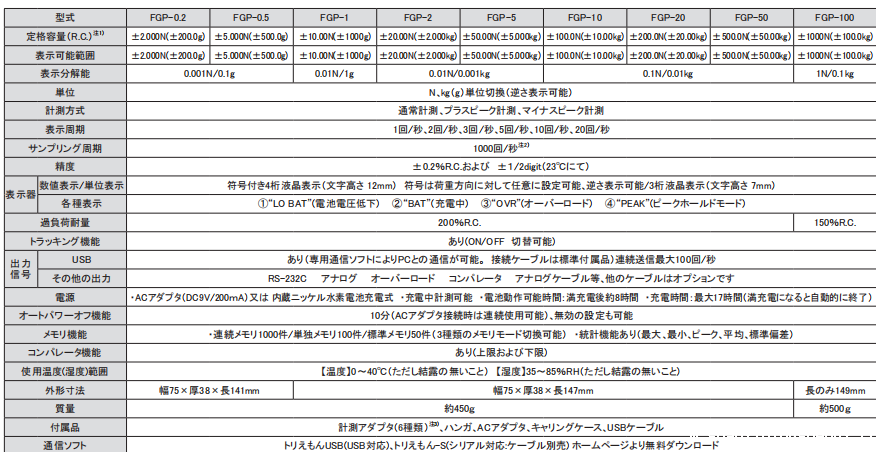 特征: 采用RS-232C接口,与PC连接,可轻松导入数据 - 三种模式可供选择:连续记忆、单独记忆、标准记忆 - 与电动试验台结合使用,扩大测量范围 配备比较器功能 - 上部和下限。通过设定值可以判断测量值的合格/不合格。