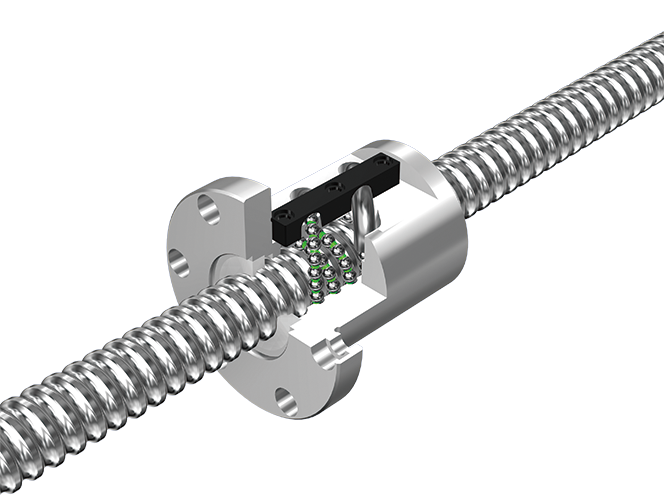符合 DIN 标准的滚珠丝杠中,承受载荷的滚珠在丝杠轴和螺母之间的滚动面切割中滚动,同时承受轴向载荷,沿着嵌入到螺母内的回珠器的凹槽移动至相邻的滚动面,然后循环返回到载荷区域。因此,滚珠会进行无限循环的滚动运动。