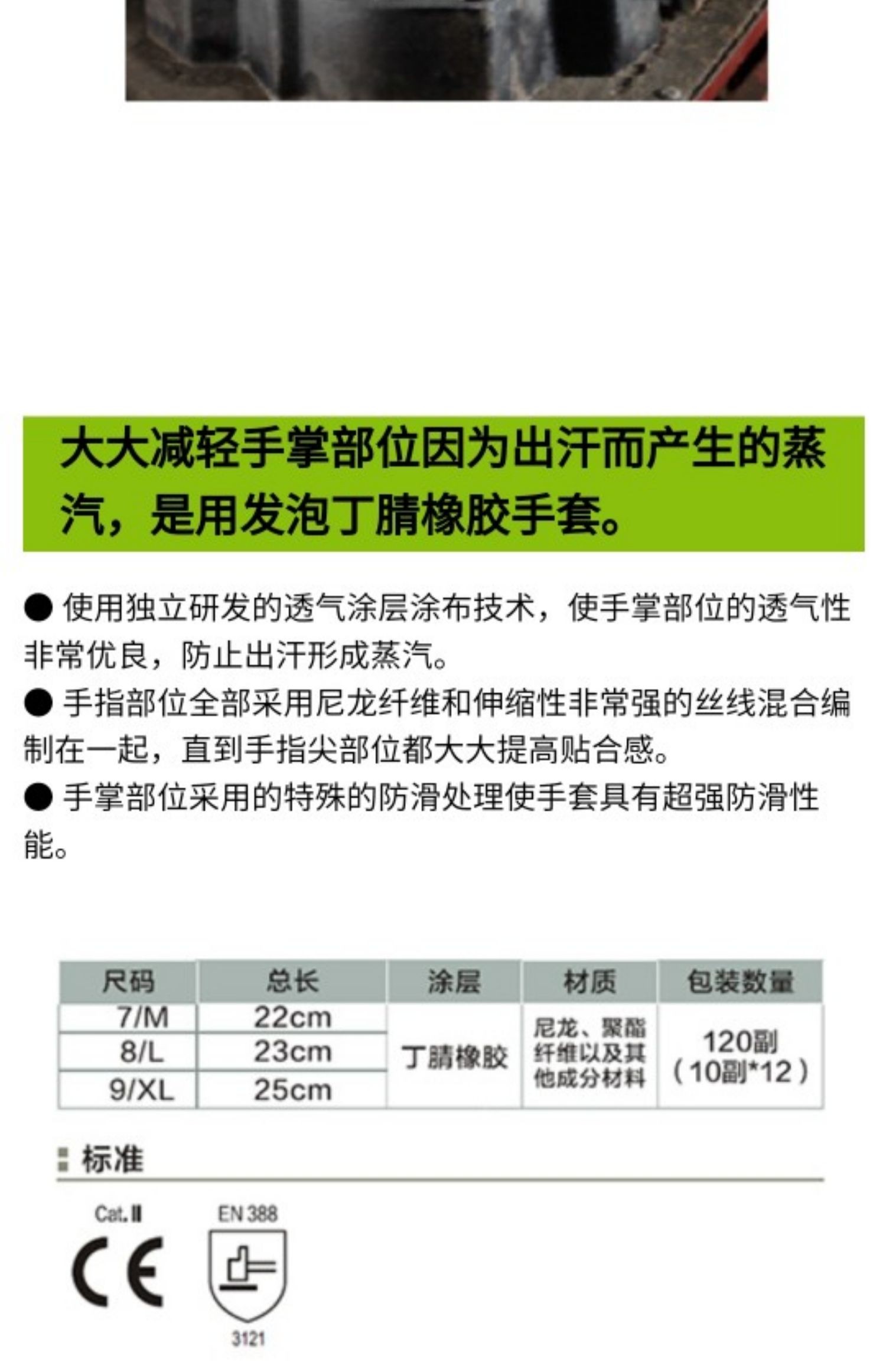 大大减轻手掌部位因为出汗而产生的蒸汽,是用发泡丁腈橡胶手套。